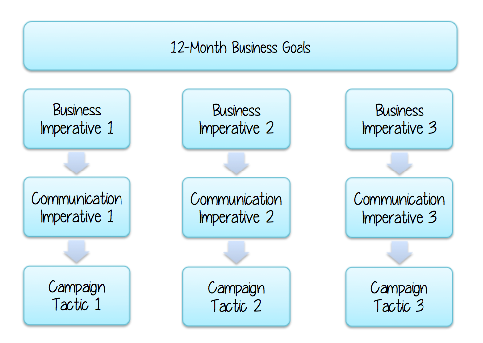 Next, your communication imperative is directly connected to your audience. What do you need to communicate to your audience in order to achieve your business imperative.