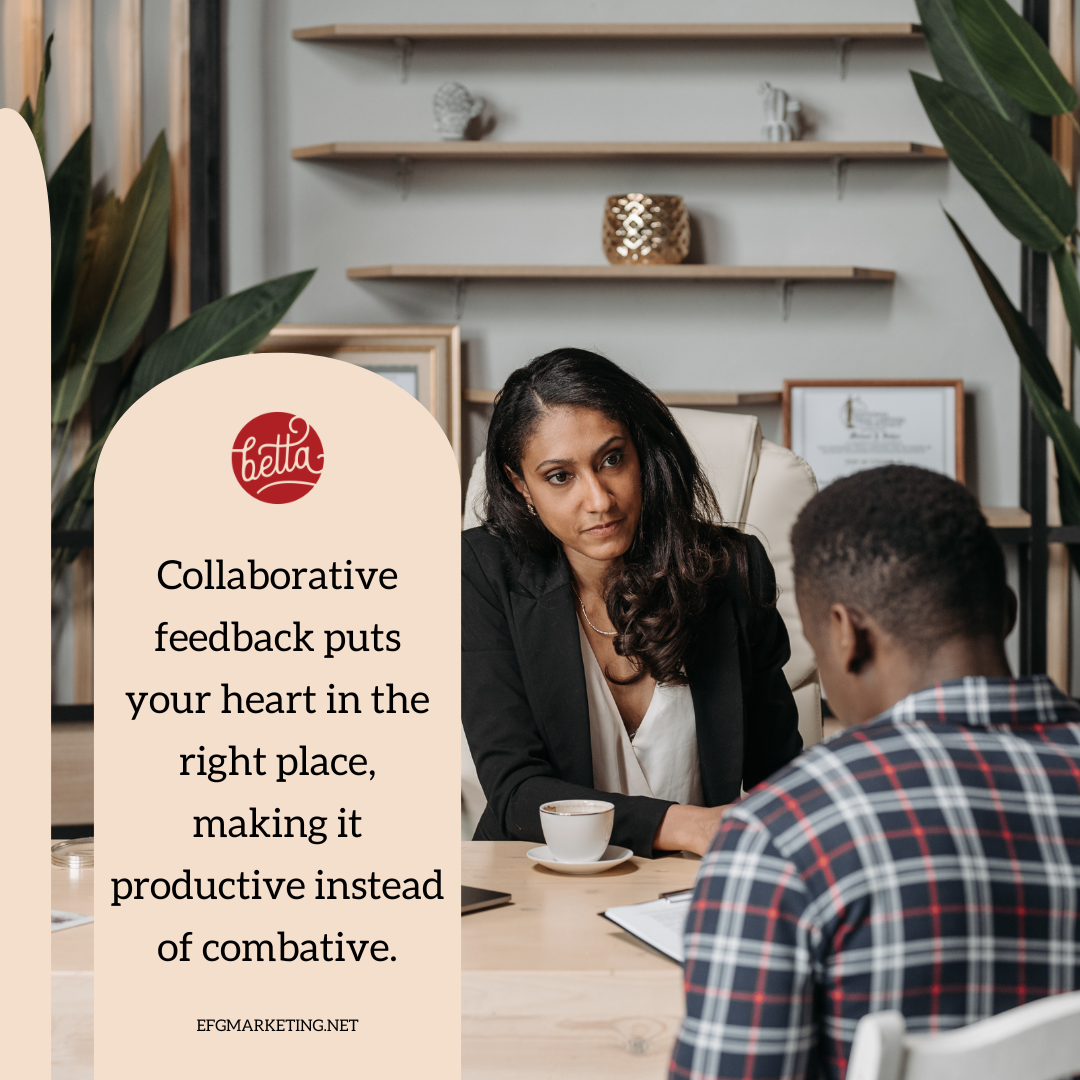Feedback is hard. It’s hard to give and it’s even harder to receive. If we think about the goal of feedback, it boils down to improving on a situation, whether personally or professionally. When it becomes collaborative, the tone shifts from, “Let me tell you what you did wrong” to “How can we improve this”. Instead of leading with the negative, collaborative feedback puts your heart in the right place and helps the receiver understand that feedback is not meant to attack but to offer some form of personal or professional development.